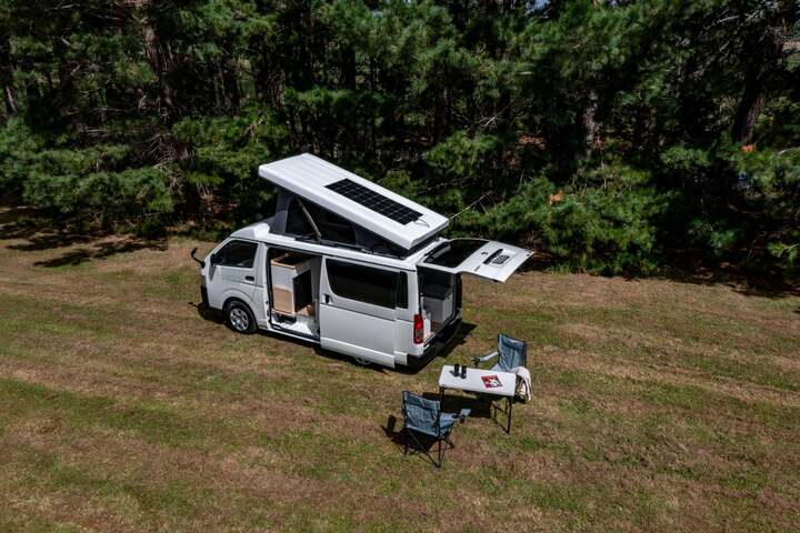 What’s Inside Our Campervans: * Comfortable Sleeping: Spacious and cozy interior, easily accommodating 2 people. * Fresh Sheets and Towels: Brand new for every trip. Keep them as a souvenir or we’ll donate them to women’s refuge. * Fully Functional Kitchen: Equipped with two portable gas cookers for off-grid, induction cooktop (when plugged in at a powered campsite), sink, fridge, and essential cooking utensils for delicious meals on the go. Power and Connectivity: * 12v Power System: Powered by a lithium dual battery setup for reliable off-the-grid power, keeping your devices charged and your appliances running. * Solar Power System: Harness the power of the sun for an eco-friendly energy source. * 240v Power Option: Connect to campsite power supplies for full access to electrical appliances. Water and Waste Management: * Generous 42L Fresh Water Tank: Easy to refill with a standard hose. * Simple Waste Water Drainage: Hassle-free system for easy maintenance. Outdoor Perks: * Outdoor shower - great for rinsing off sandy feet! * Deck Chairs and Table: Two deck chairs and an outdoor table for chilling and dining al fresco. Why You’ll Love Hazy Campers: * Certified and Safe: Fully compliant with new freedom camping regulations, certified for electrical safety, and road legal. * Convenience: Located in central Auckland, just 20 minutes from the airport. * Modern Fleet: All vehicles are 2018 or newer with low mileage. * Unlimited KMs: Travel as far as your adventure takes you. * Extra Comforts: New sheets, towels, and more. * Great Deals: We offer discounts for hires over a month. Please contact us to discuss. * 100% Kiwi Owned and Operated Experience the freedom of the open road with Hazy Campers. And if your preferred dates aren't available, be sure to check out our other camper van listings.