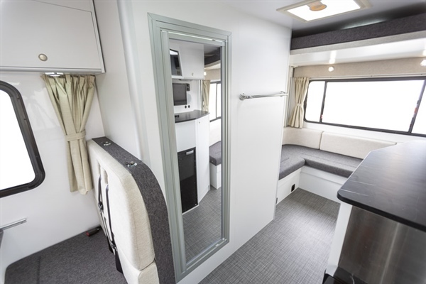 The Euro Star features a unique bed lift system, offering superior comfort and convenience for the discerning traveller. Forget dinette conversion, with a spacious double bed available at the push of a button. The vehicle's lavishly appointed interior includes deluxe kitchen facilities, electric flush toilet, quality upholstery and flat screen TV and DVD player. The ultimate self drive experience has arrived in the spectacular Euro Star.