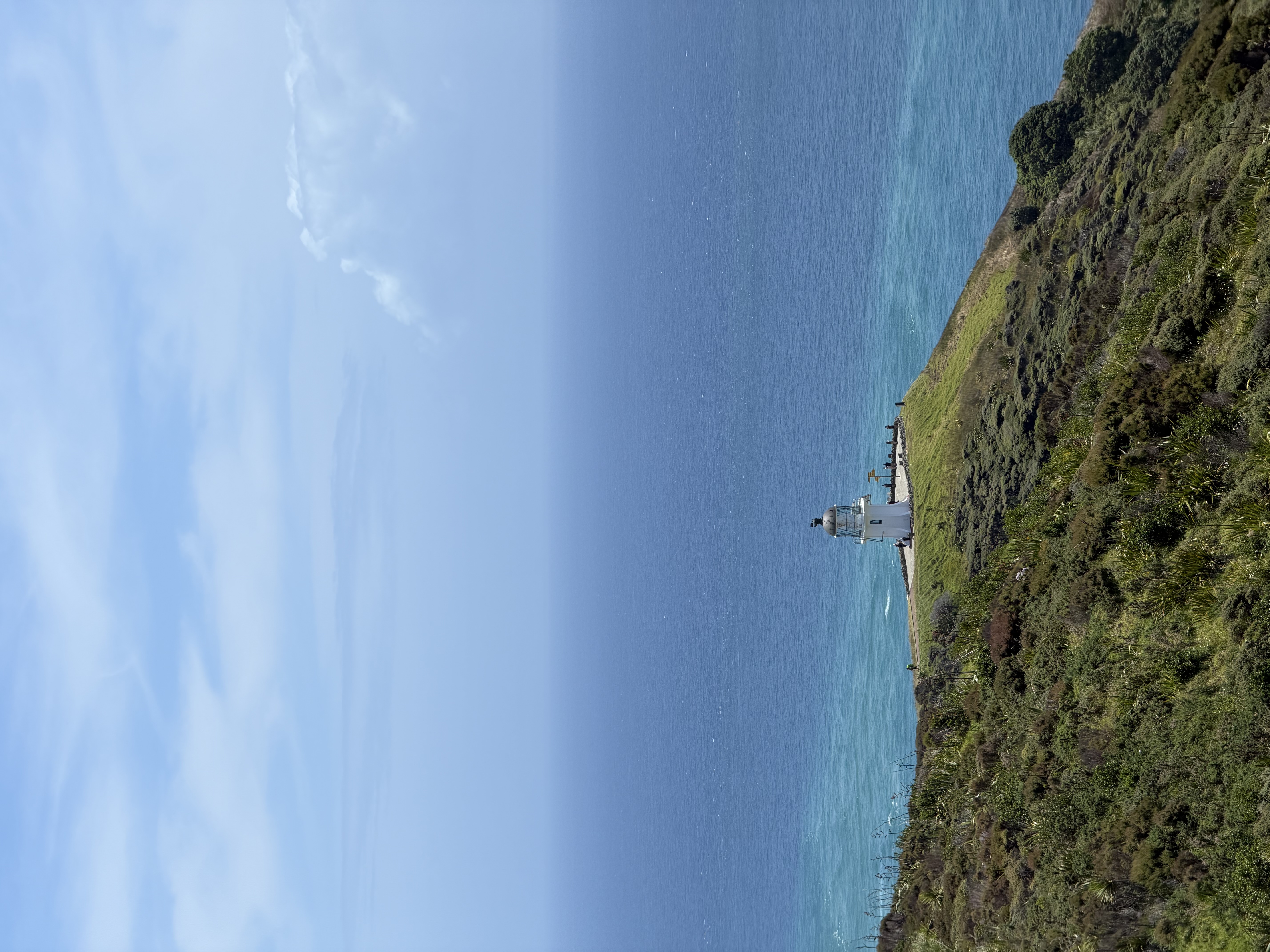 The sealed track is wide and even, descending to the lighthouse above Cape Reinga.