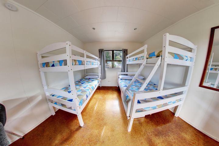 – 1x double bed with single bunk above plus 1x single bunk bed, all in one room