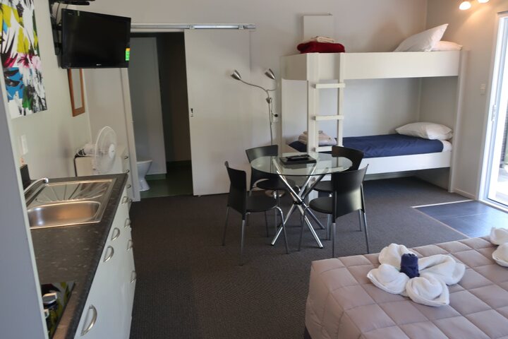 Fully self-contained (motel style) accommodation. Linen included. Some with large deck overlooking playground and park. One unit with garden view can sleep up to 5.