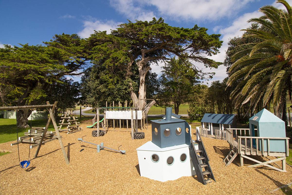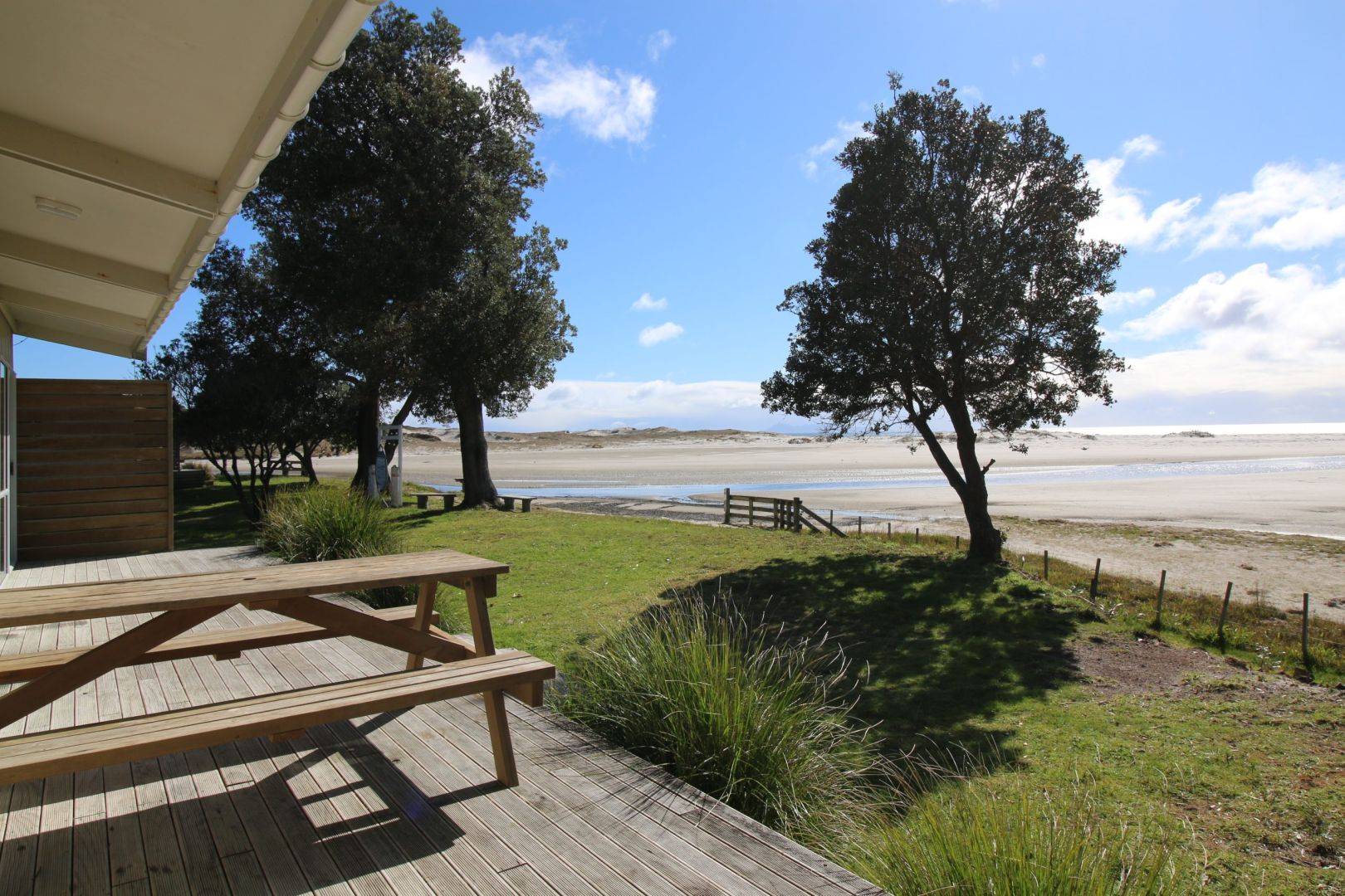 Beautiful location right on the beach and river estuary. Good choice of cabins or sites around the park. There's a playground for the children. Good sized and clean cooking area and outside, undercover eating space. Games room and seperate TV room are great options for wet evenings. Small store open 9 am until 5pm. Hot Showers 50c, you can get change from the store. Friendly staff. About a 30 minute drive from Wellsford.