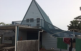 Has 5 small separate bedrooms. Main room has a kitchen, dining, lounge. Fridge, microwave, hot plates, cutlery, crockery, pots, pans, kitchen utensils. Use communal amenities which are below the lodge. Large deck with sea and golf views. Bring your own linen, bedding, pillows and towels.
