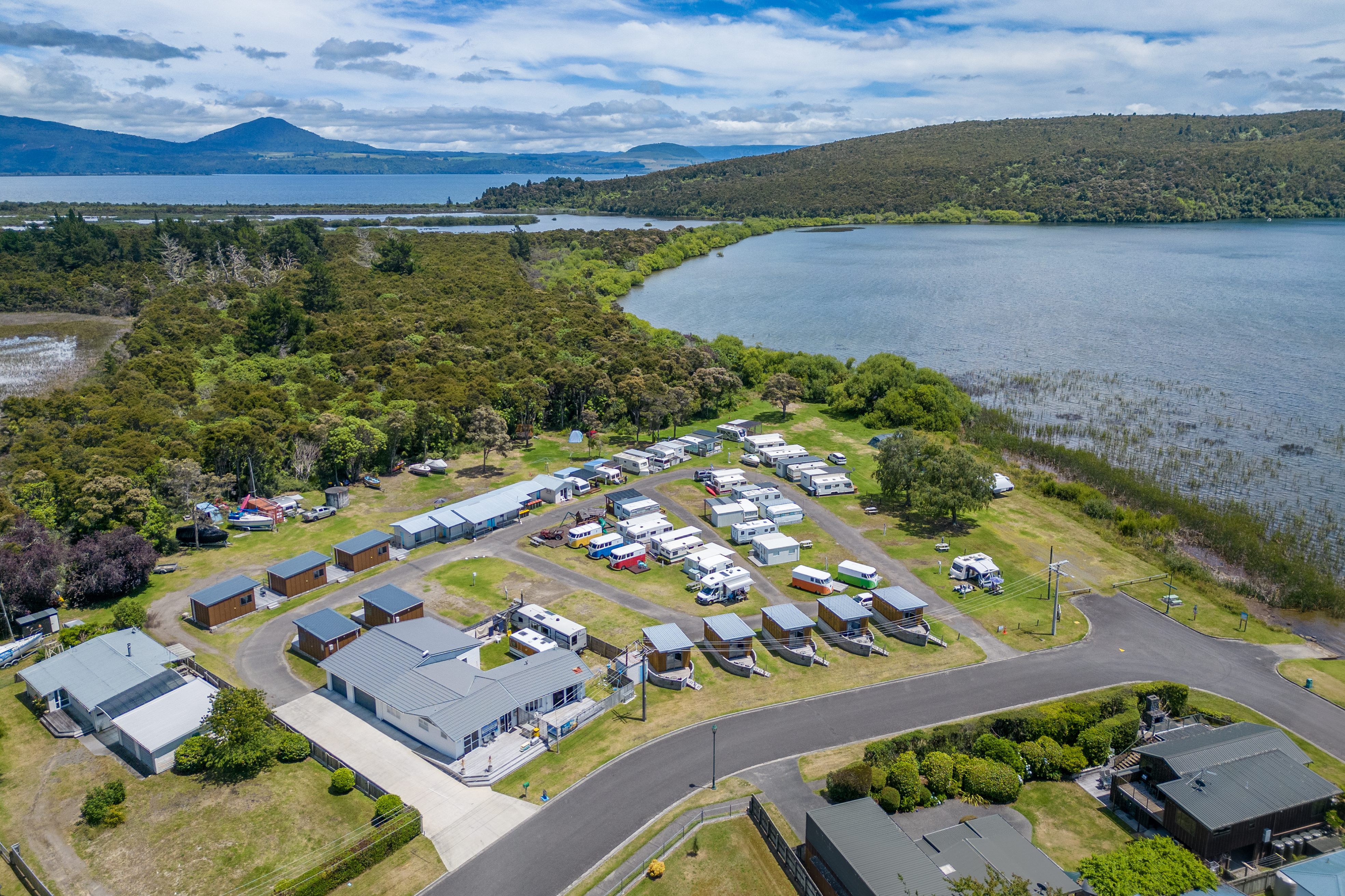 right on the edge of lake Taupo. Easily fitted our 6 berth van into the lake view site. Facilities are great and very clean. There is also wi-fi that reaches most of the camp if you need to stay connected. Also great coffee vendor near the marina. Can't wait to go back there.