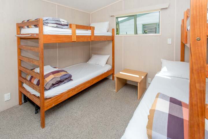 This open plan living space has two sets of bunks, one set with a double on the bottom. Apart from towels, all is provided for you to relax and enjoy your stay in these cosy rooms.