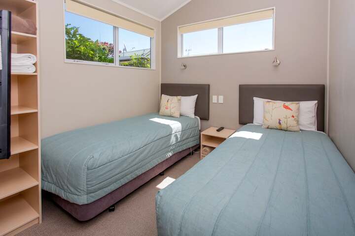 The units contain one king-sized bed in the main living room, two single beds in the bedroom, sleeping up to four guests. Each unit has its own en-suite bathroom, with shower and toilet.-