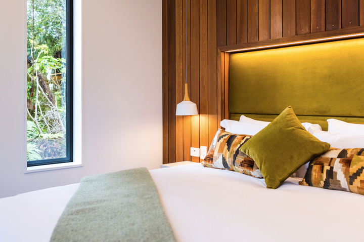 Spacious and stylish studio Deluxe Tree Lodges, privately nestled amongst lush rainforest with large spacious decks so you can immerse yourself in nature. Featuring a king and a single bed each with pristine linen and plush pillows for absolute luxury, a large en-suite bathroom with rain shower and underfloor heating, a kitchenette, a Nespresso machine, a sofa bed, and all the modern comforts.