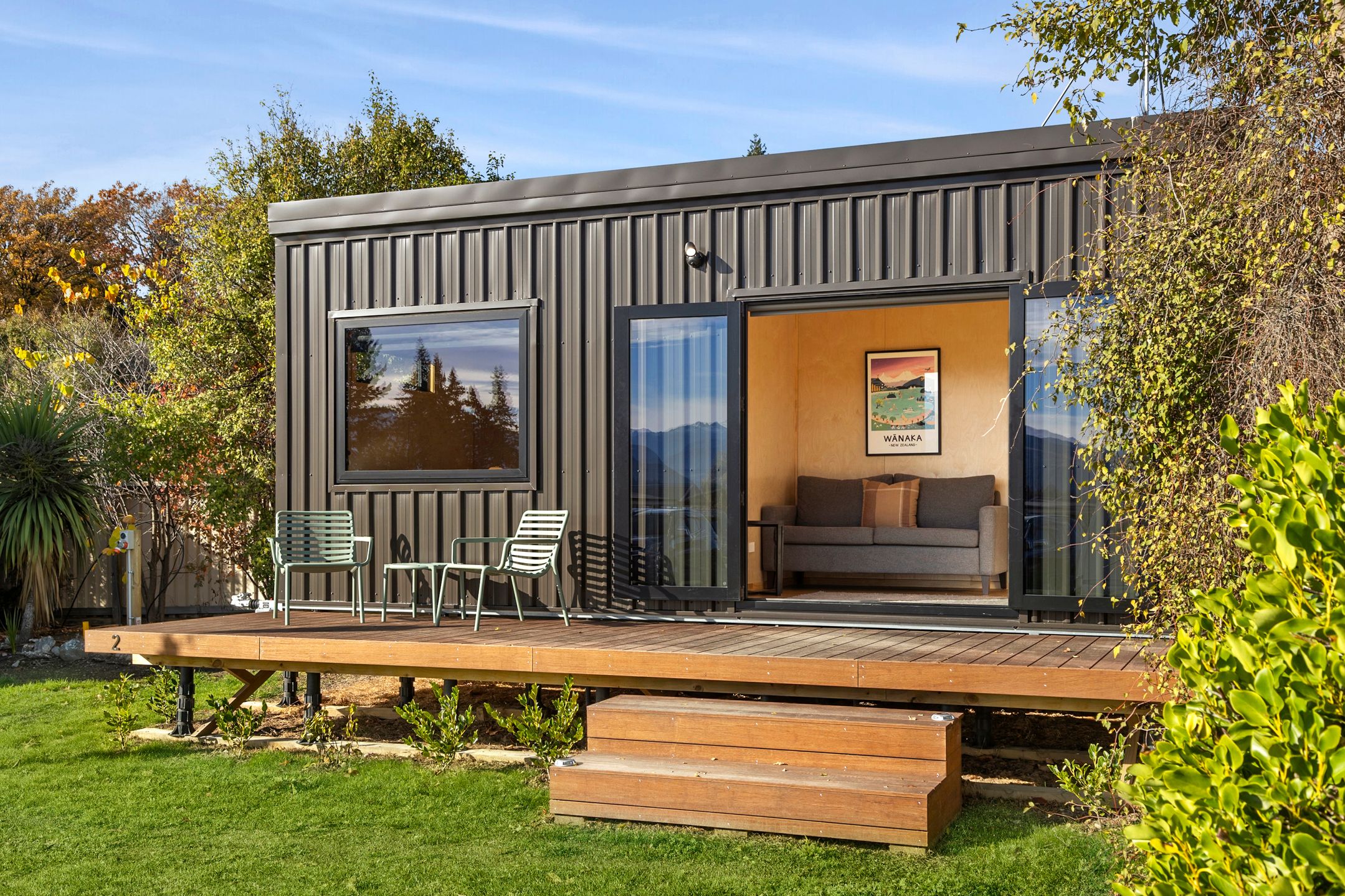 Compact and modern, this cosy cabin sleeps two guests in a comfortable queen bed with linen provided. The open-plan layout features a kitchenette with microwave, stovetop, fridge, and breakfast bar, plus a lounge area with TV and heat pump. Step onto the private deck to enjoy mountain views. Shared bathroom and laundry facilities are just a short stroll away. Ideal for couples seeking a quiet escape.