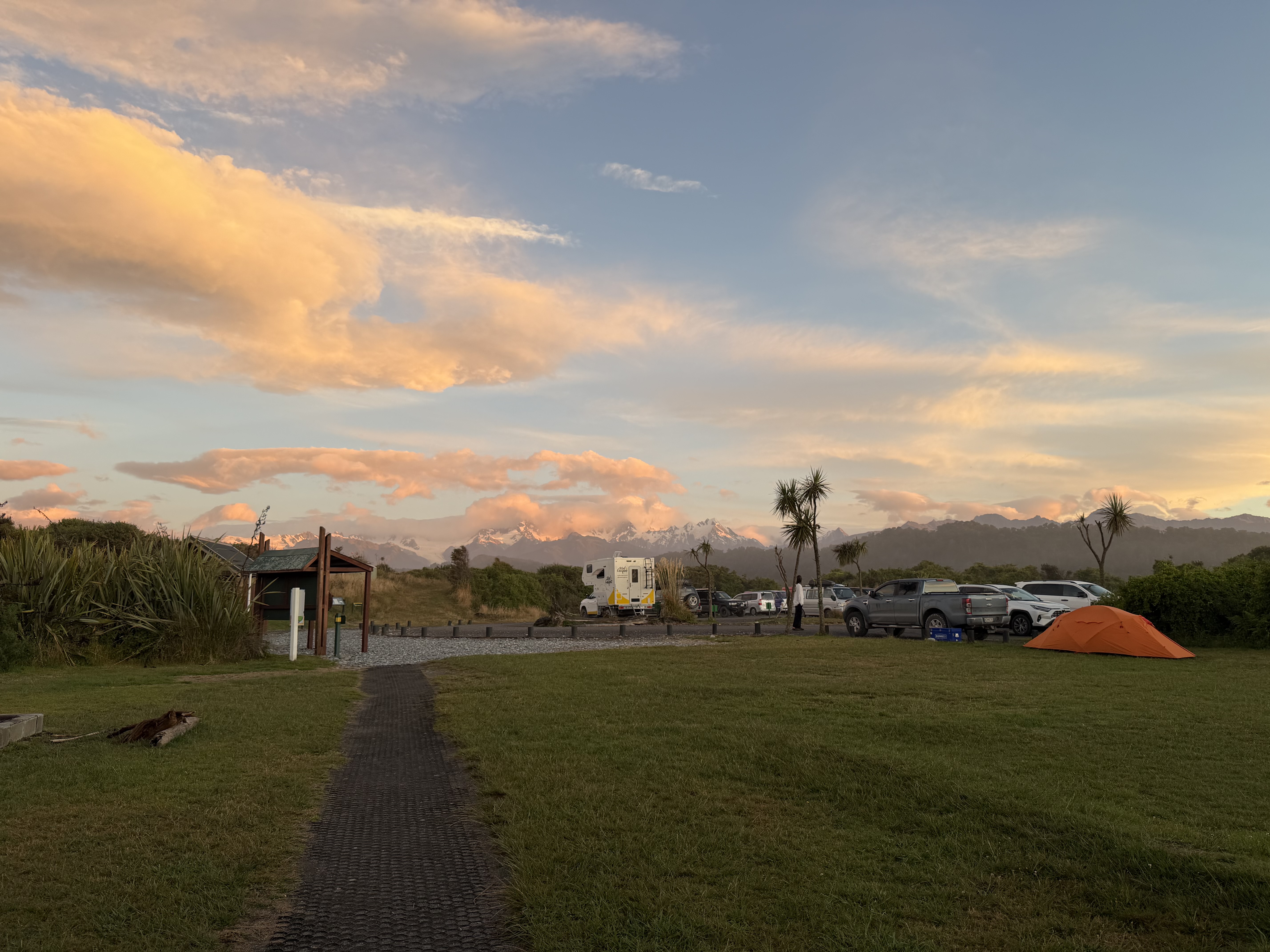 Beautiful sunset, sandflies are present so take your repellent. Clean flushing toilets with basic wash basin. Take your own drinking water. Great walks down the beach. Secure your stuff, Kia’s were there in the morning and relocated out footwear and wrecked another campers shoes. Shoutout to Bridget and Brett from Australia for the good yarns.