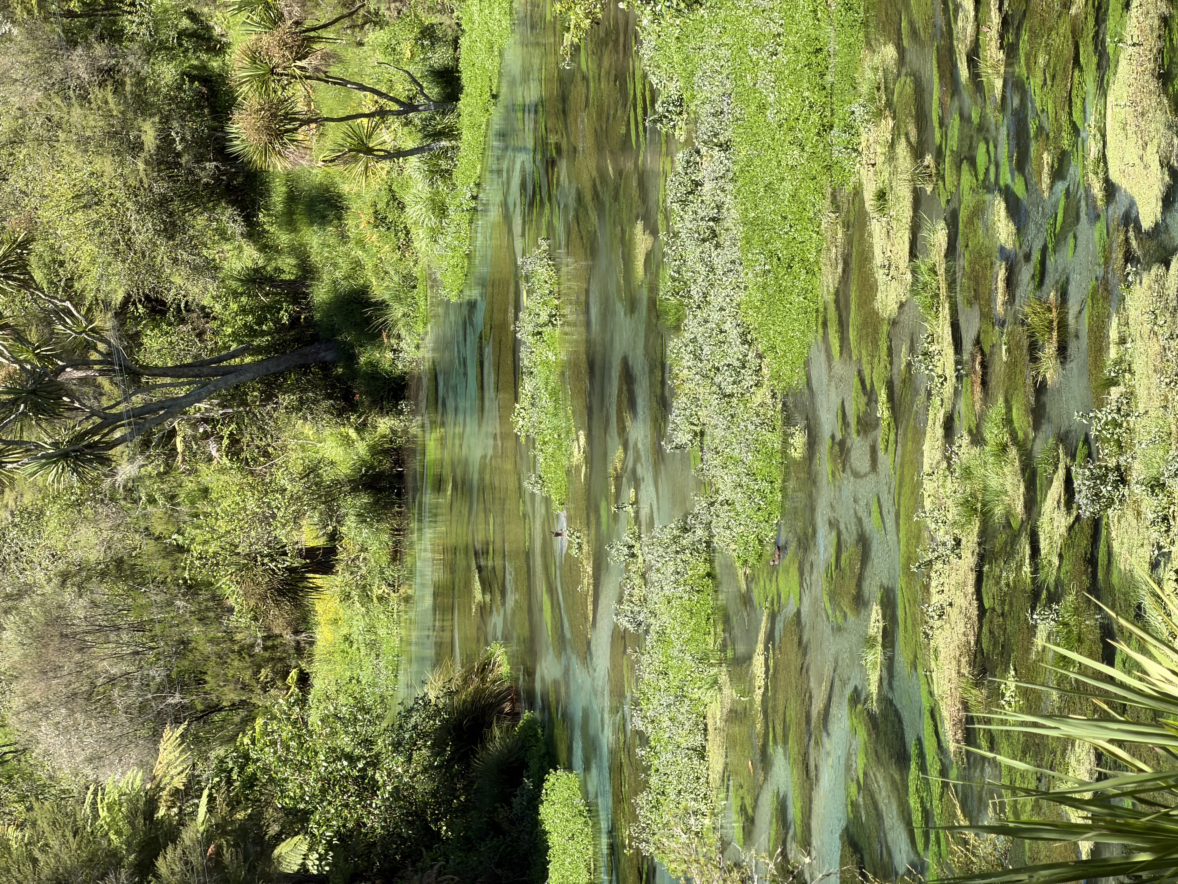 The pumping shed for Putaruru’s water supply and viewing platform at the springs are barricaded to prevent swimming. Human skin oils and dislodged attachments are polluting to the water and disturbing to the other life.