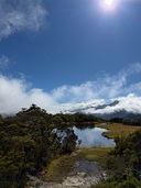 This is a different world of stunted silver beech, alpine bogs and tarns. You are spoiled for choice which way to look. The interpretation plaque helps identify the main mountains and valleys on the 360 degree panorama.