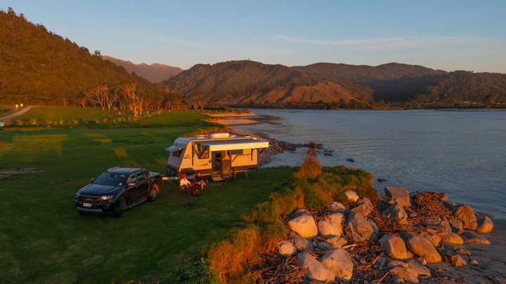 Gentle Annie has a beautiful camping ground at the mouth of the Mokihinui River. Sheltered and private camping sites are set amongst landscaped gardens, all within a couple minutes walk to the river and beach.