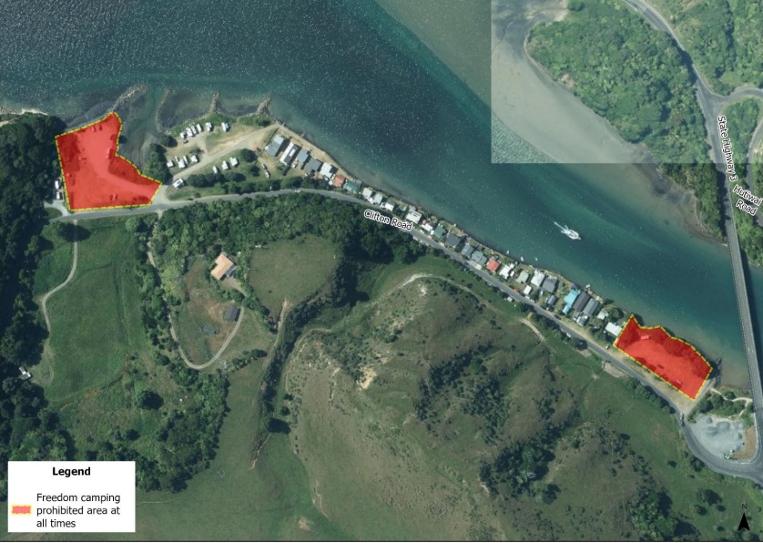 Based on signage, it doesn’t seem like the small community wants the freedom camping spot.