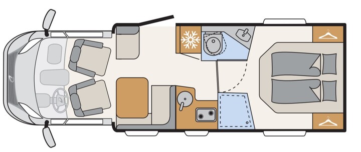 The COMPACT PLUS is very spacious for a compact motorhome. Despite its just 7m length, it offers all the creature comforts that make the difference between an average campervan experience and a true NZ dream vacation. Treat yourself to one of two choices for your layout: