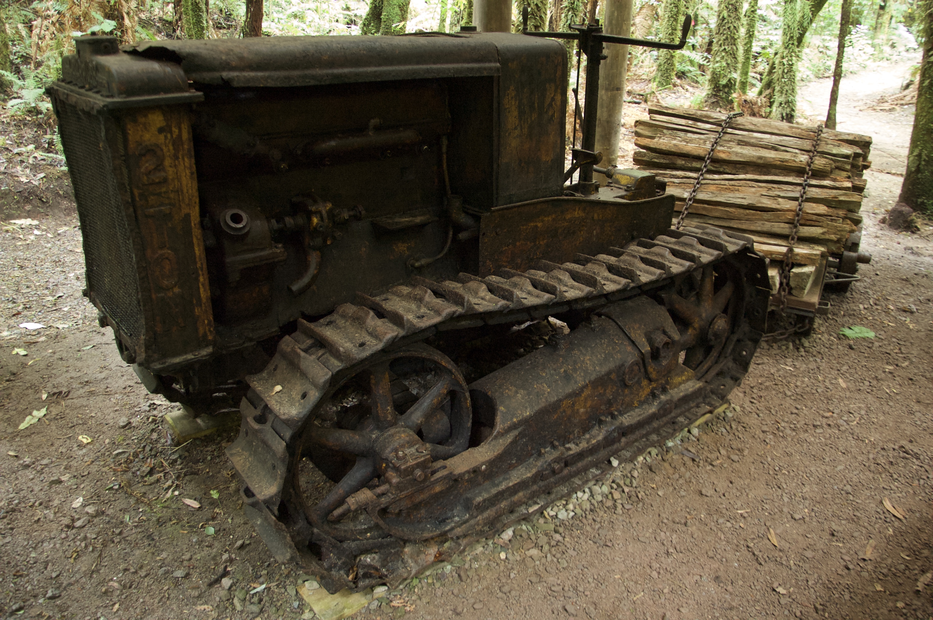 Pureora State Forest 96 was designated in 1935. A huge windstorm sometime between 1895 and 1915 toppled trees like matchsticks. After initial surveys, more than 300,000 quality strainer posts were cut from wind-thrown totara. Most were used in Lands Department schemes. Bullocks carted split posts to the forest edge, where they met trucks connecting to the railway. From 1945 Ned Barrett used a 2-ton Caterpillar tractor to pull them. This was later abandoned when it broke down in the 1940s and is now preserved as an industrial artefact.