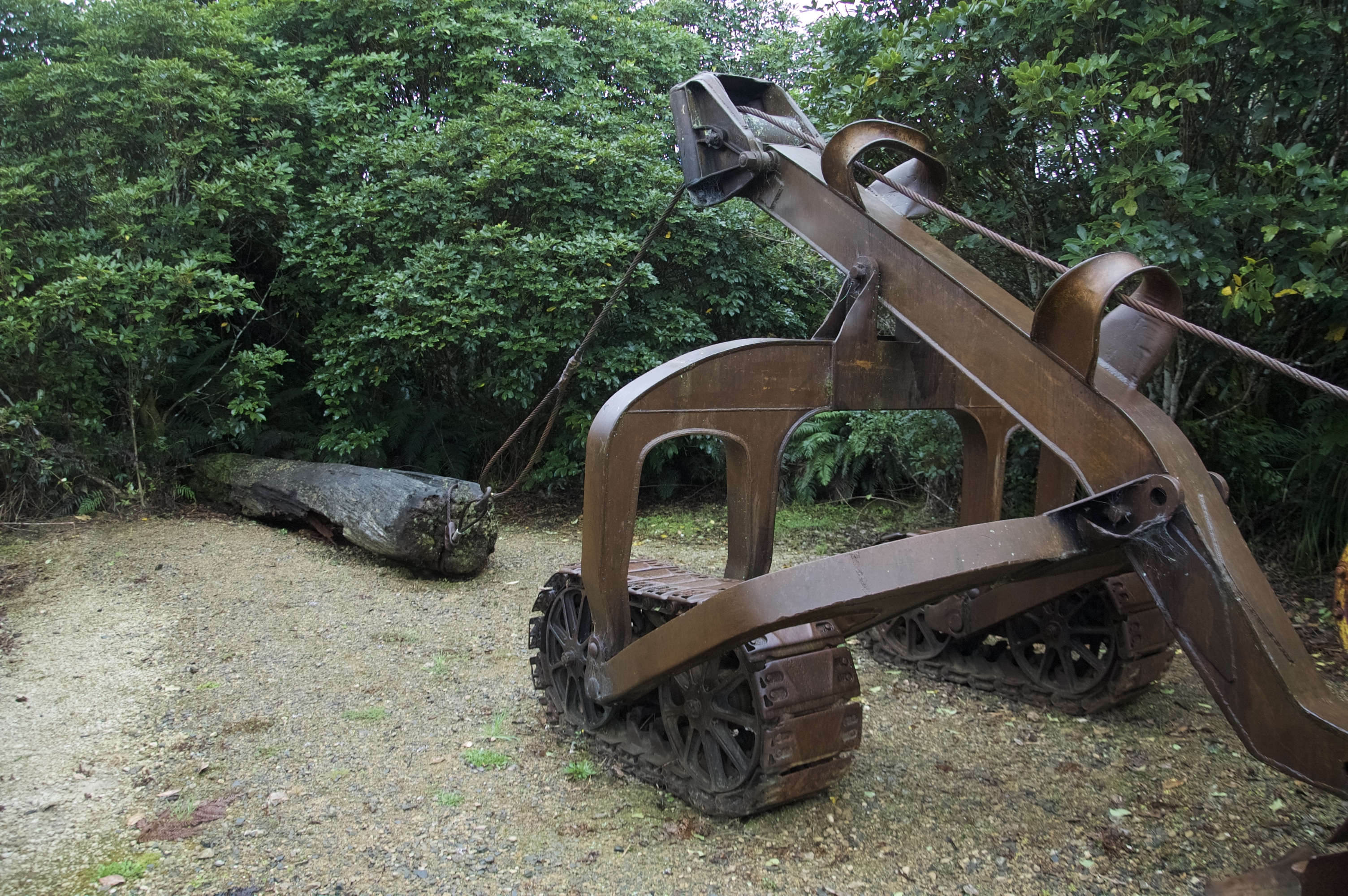 The steam hauler (and old tractor) are nestled in the regenerating forest.