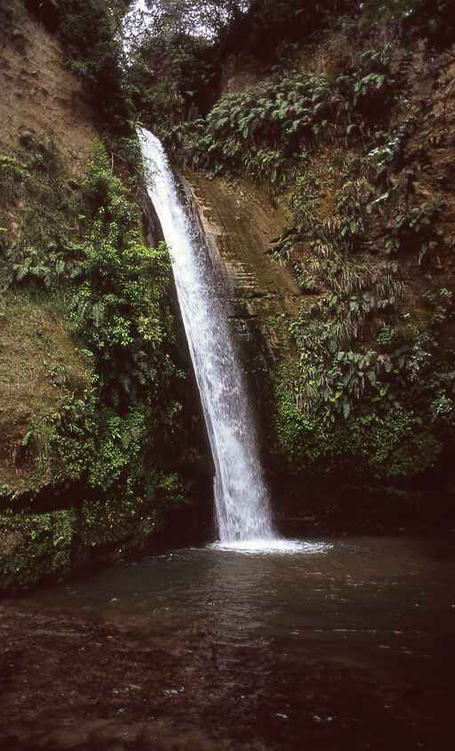 Te Ana Falls crash into a cylindrical crater they have excavated. The breath of the water’s plunge causes the ferns and mosses adorning the cavern walls to glisten and the fine misty spray is a life saver on a hot day.