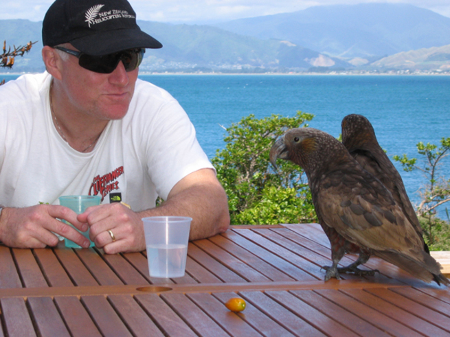 Our water taxi left Paraparaumu Beach just after 9am and about half an hour later we were dropped off at Waiorua, a private settlement at the northern end of the island. John our guide gave our small group a very informative talk about the history of Kapiti and explained the conservation measures that have been put in place to protect the native bird life there. Then it was time to start our climb to the peak accompanied by bird song, sightings of some rather well fed looking tuis and wekas among other birds and were finally rewarded with a fantastic view overlooking the Tasman Sea when we reached the summit. Upon our return to ground level we were greeted by a delicious lunch prepared by Vicky and her helpers, then feeling well satisfied lazed in the sun until the water taxi came to pick us up at 3pm to take us back to reality. I would have no hesitation in recommending Kapiti Island Nature Tours and enjoyed being part of their whanau for a day and sharing their special place
