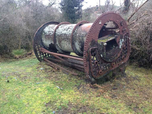Today the cutter/drill remains of the suction dredge. This rotating cutter was used to loosen the sands before suction. Boilers, control gates and a pontoon are discarded around the place too.