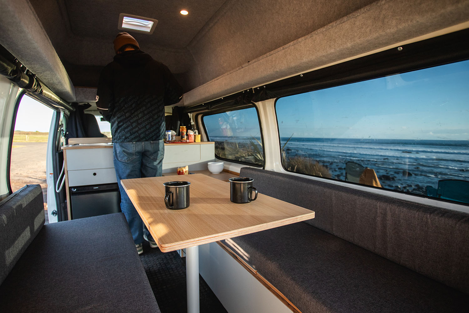 Explore the road in style – The Big One is our rental campervan option for up to three travellers. With a convertible sleeping space and on-board kitchenette, it's the practical, comfortable choice for your big trip.