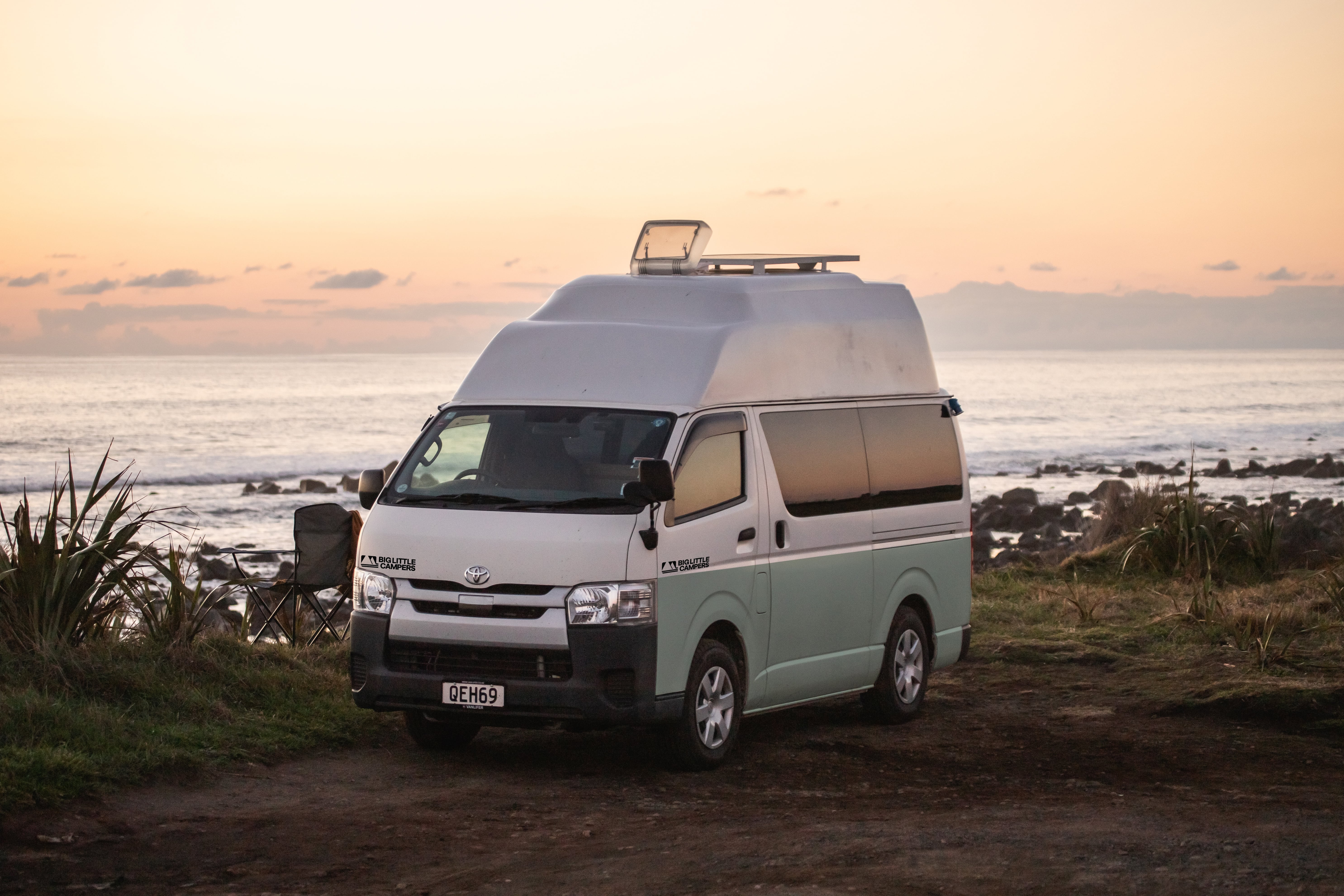 The Hi-Top Toyota Hiace is the backbone of campervan life in New Zealand. Making The Big One spacious, reliable, and comfortable to drive.