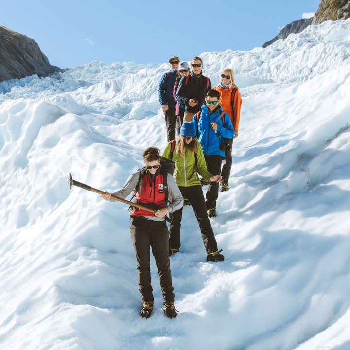 The fly-in, fly-out Flying Fox Heli Hike combines the excitement of walking on the Fox Glacier with the thrill of helicopter flights. By flying in you are able to access and explore a part of the glacier where its forces work hardest and often create spectacular ice caves and arches.