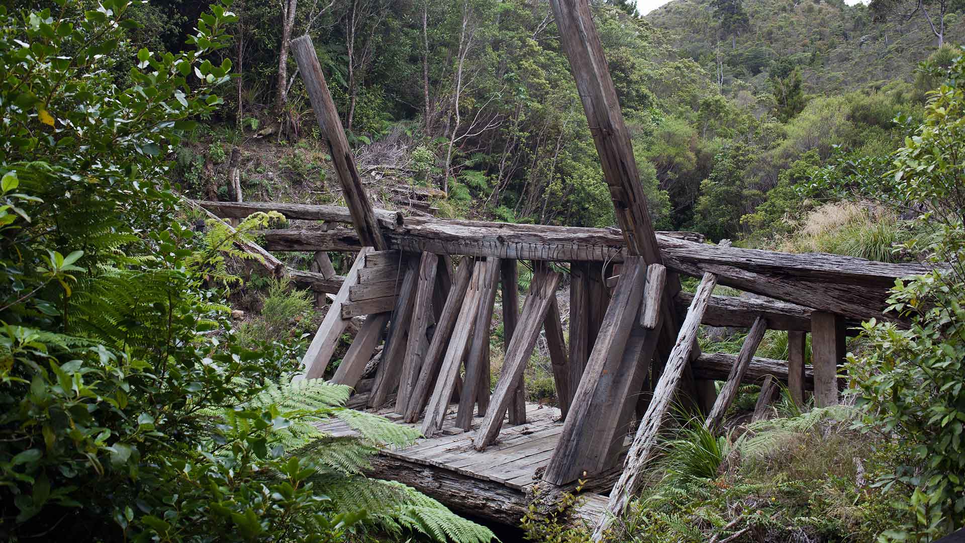 This campsite on the Kauaeranga Kauri Trail is near the historic Dancing Camp kauri driving dam.