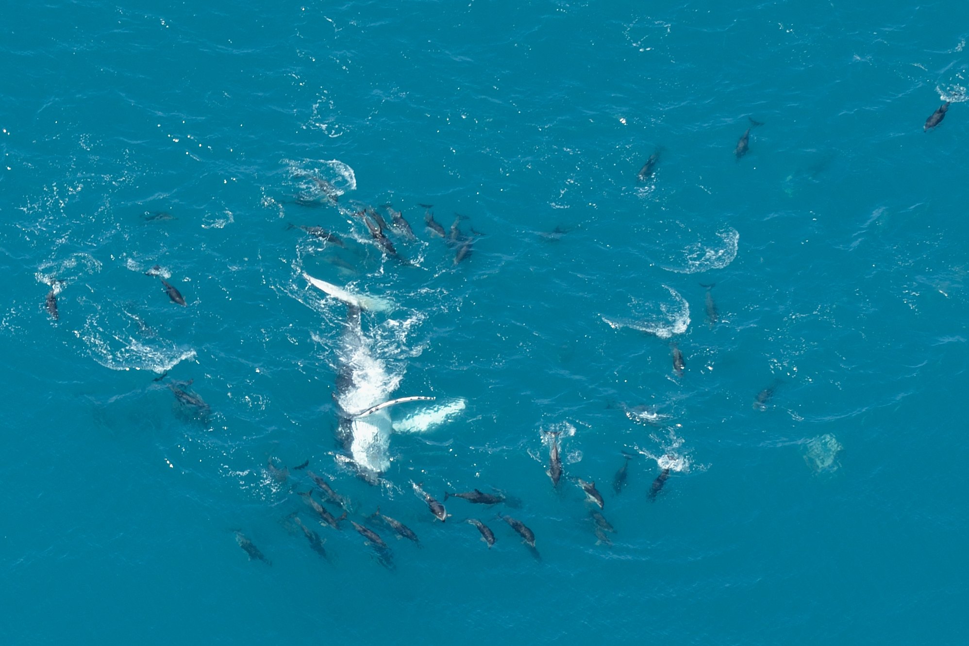 We saw the whale right up until it dives. The pilot flew us over a wonderful pod of dolphins playfully swim out to sea. We really love the experience.