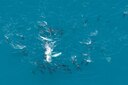 The pilot made a good and thorough search but if the whales aren't there he can't magic them to the surface. Then he saw something we didn't and went straight to where a whale was surfacing, well before the boats were even heading in that direction. Brilliant. He stayed circling until the whale dived and went over to a pod of dolphins he had noted whilst circling. Our 30 mins was well overdue but he still took time out to have an overview flight of the area before landing.