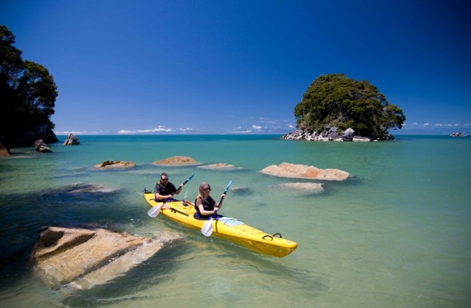 A range of guided kayaking tours and freedom rental sea kayaking trips in kayak canoes. Guided kayak trips with guides that will take you along a stunning stretch of coastline for a fantastic sea kayaking experience. Enjoy panoramic views of Abel Tasman National Park, check out nesting cormorants, sea caves, islands and the world famous Split Apple Rock.