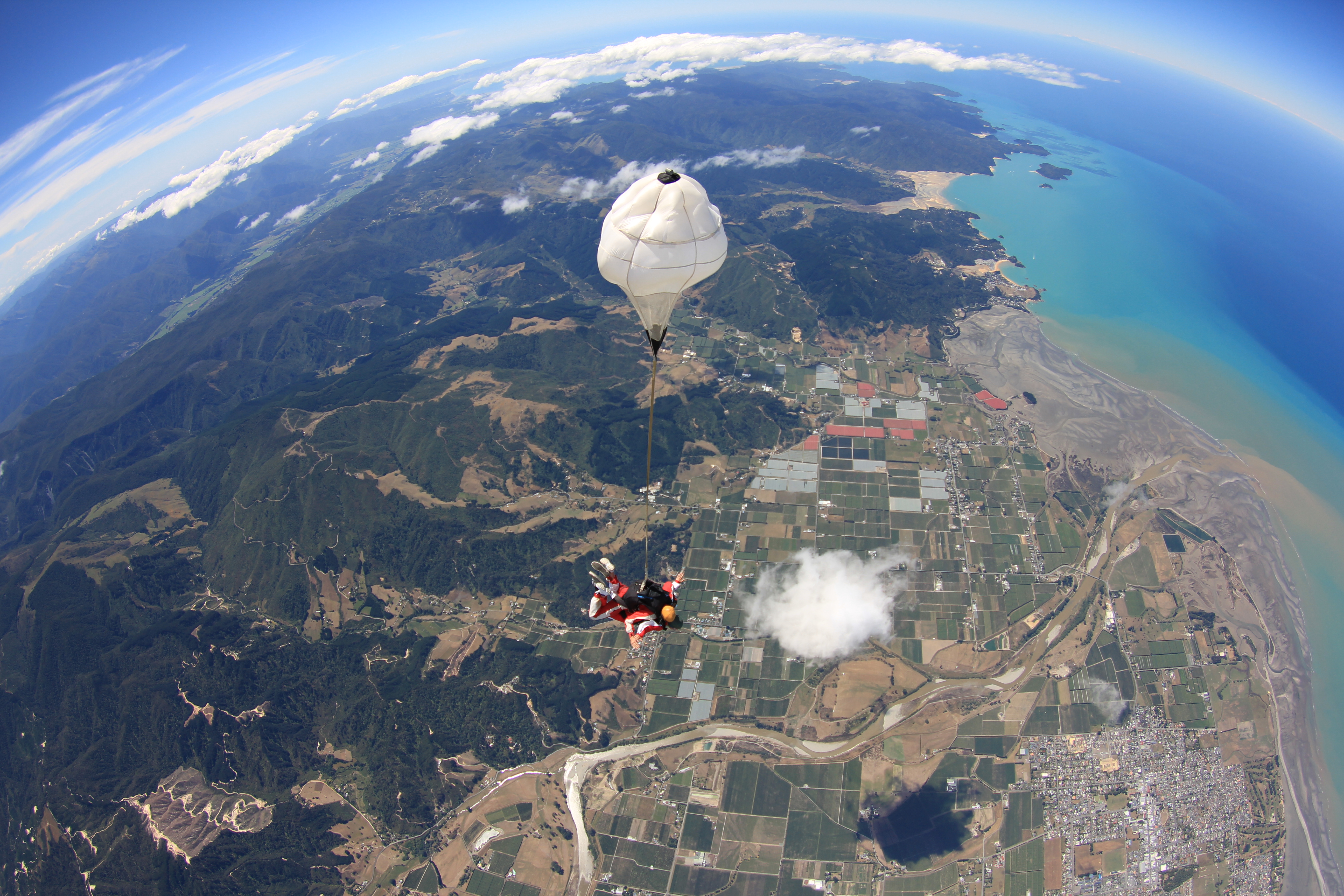 You’re in great hands with our friendly award-wining team and stellar safety record. Enjoy a scenic flight climbing to altitude-then the door opens! Nothing can prepare you for the sheer exhilaration and adrenalin you’ll feel as you free fall at 200kmh for over 60 seconds! Skydive over paradise at 18,000ft, one of the highest in New Zealand. You’ll see both islands, soar over 3 national parks, golden beaches, turquoise oceans and snow-capped mountains. .Once your parachute opens, gently fly or add a few spins to get back down to earth. Best Skydive value!