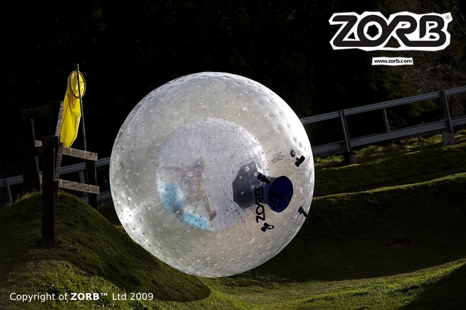 Our ZYDRO ride is said to be a cross between a roller coaster and a water-slide. You, the ZORBonaut, superman dive into our specially designed ZORB globe along with a few buckets of water (warm in winter, cool in summer). We send you down the hill slipping, spinning, sliding, and laughing your way to the bottom. Try our Sidewinder track alone for a ride you will never forget, or share the experience with up to 2 mates in a ball.