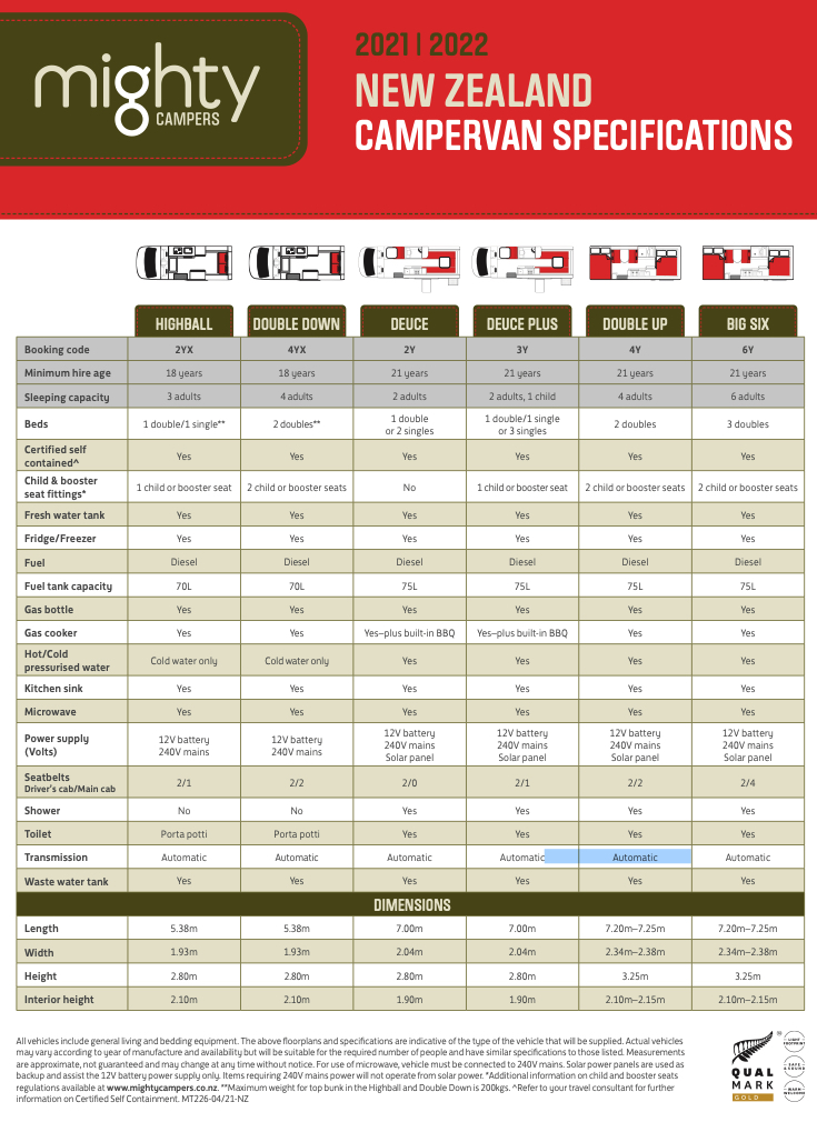 BondBond amount: NZ$0 Bond note: A credit card authority is taken to allow for the recovery of any amounts due by the customer during or upon conclusion of their campervan rental. These charges include but are not limited to: vehicle cleaning (this includes toilet and waste water tank emptying, deep clean if an animal or smoking has been permitted in the campervan), traffic infringements (eg speeding, parking), tolls or freedom camping fines, On Road charges relating to towing, delivery and return of vehicle, late return fees, refuelling with diesel or petrol, or refilling LPG, rental extensions, road restriction penalties. For security purposes, only the customer's credit card can be used for the Credit Card Authority. What is bond? A bond is a dollar amount entrusted to the campervan company by the hirer. It covers costs for vehicle/equipment damage or if the conditions of hire are not satisfied. The bond is made available to the campervan company in such a way that it is immediately accessible should they require it (cash transfer, credit card authorisation etc). The bond authorisation is arranged at the beginning of the hire period and cancelled or refunded when the transaction is completed. What is bond? A bond is a dollar amount entrusted to the motorhome company by the hirer. It covers costs for vehicle/equipment damage or if the conditions of hire are not satisfied. The bond is made available to the motorhome company in such a way that it is immediately accessible should they require it (cash transfer, credit card authorisation etc). The bond authorisation is arranged at the beginning of the hire period and cancelled or refunded when the transaction is completed. |