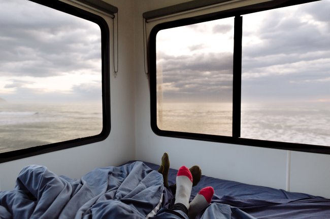 Our Mighty Double Up sleeps up to 4 people in 2 double beds - in a neatly packaged camper, where you can convert the dining area into a bed. It’s got a loo, shower and cooking conveniences, making it a roomy camper at a Mighty great price. And look at that view.