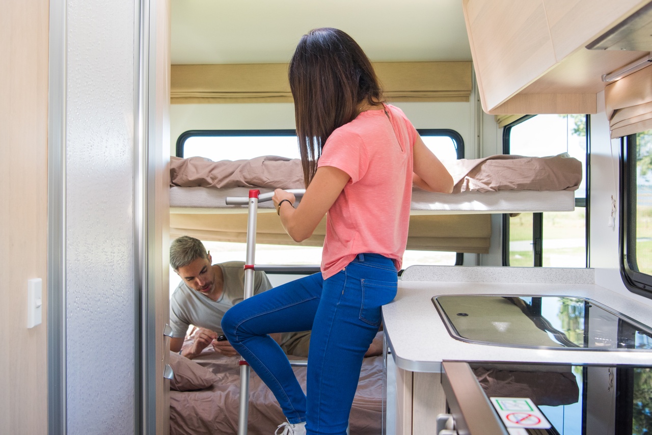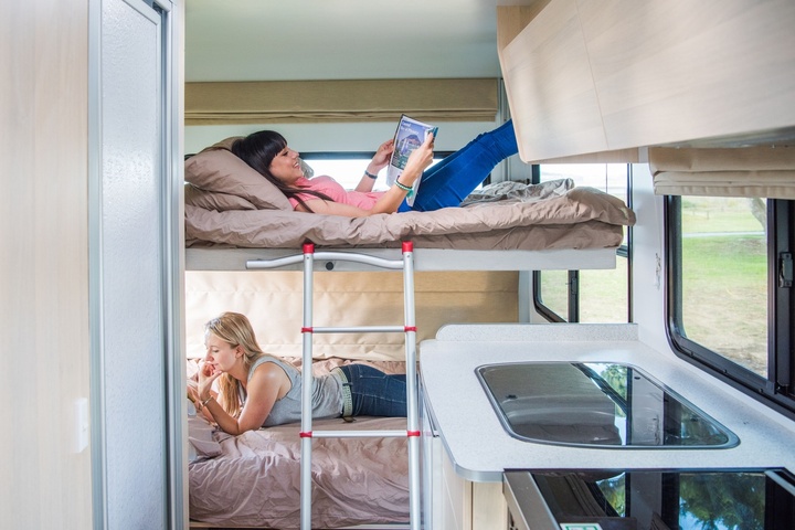 With a dinette that converts a double bed and drop-down double bed above it, this space saving camper will be super popular for a family of four or group of friends. The automatic transmission makes the Discovery a breeze to drive.