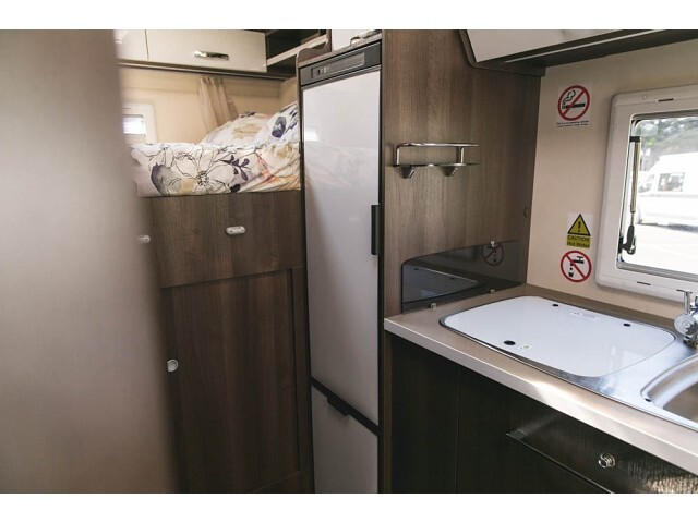 Family option with 2 x permanent beds and large external storage- with side entrance on passenger side, younger couples needing extra storage but could sleep up to 6, great temporary accommodation.