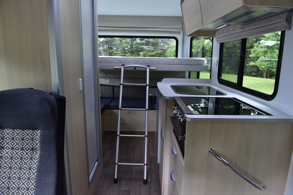 Bed1: permanent drop down bed above rear lounge (1400mmx2000mm)