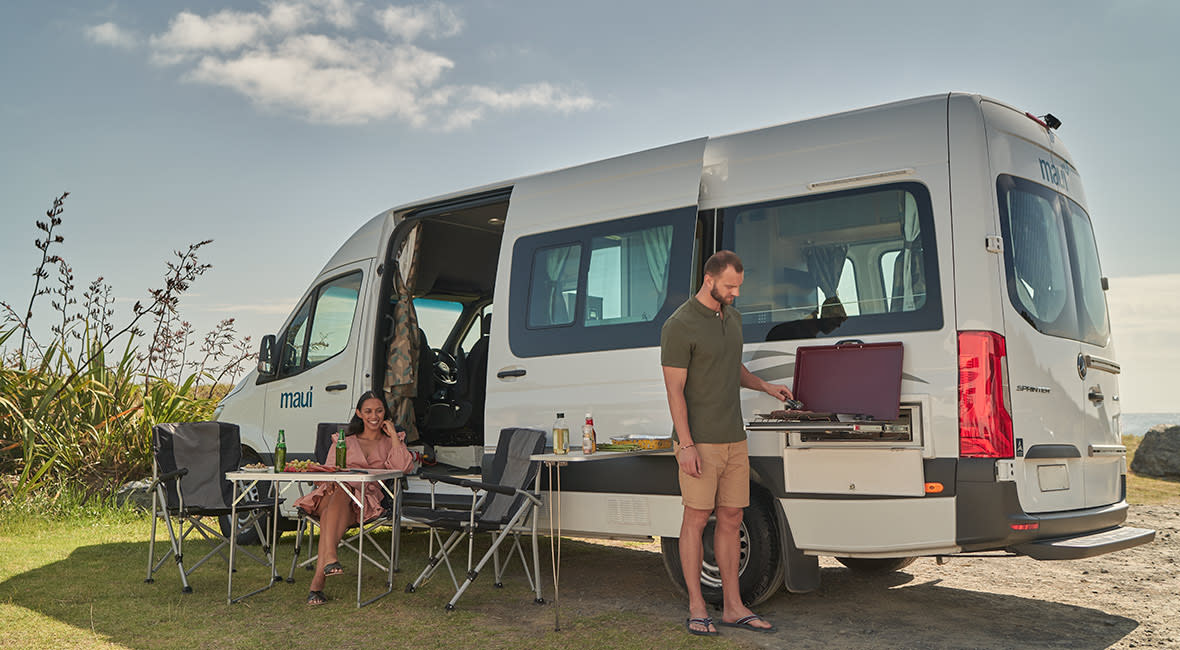 The Ultima lets you take your world with you on your motorhome rental. Now you don't have to leave home without your beloved golf clubs or fishing rods - we've designed the ultimate storage space for you. If you decide to relax inside, just slide out the LCD screen & DVD player and kick back with your favourite movie. A glorious Kiwi summer evening is not complete without a BBQ, so we've made it part of the Ultima campervan.