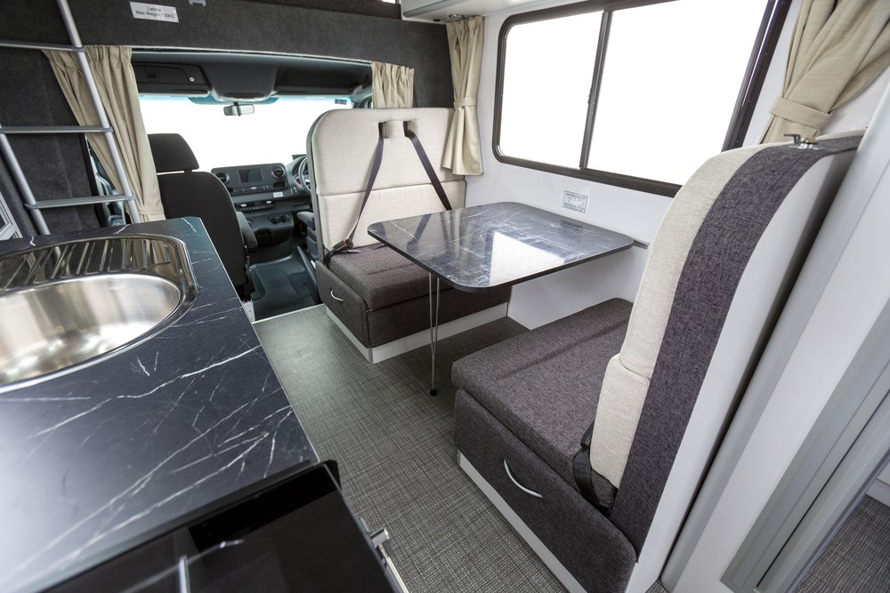 Whether travelling as a family or as a group of friends, this stylish vehicle provides expansive, flowing space where sleeping arrangements prioritise comfort and privacy.