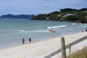 Right next to the beach which is a very long and nice beach where you can make nice walks. It is a big campsite with several private bungalows but well organised so you are not included in their center as it is in other campsites (especially in Whangamata/coromandel where it is horrible).