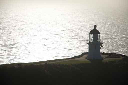 The concrete tower of Cape Reinga lighthouse is 10-metres-tall and stands 165 metres above sea level. The lens was shipped from England and installed on Motuopao Island in 1879. Cape Reinga lighthouse started operating in 1941.