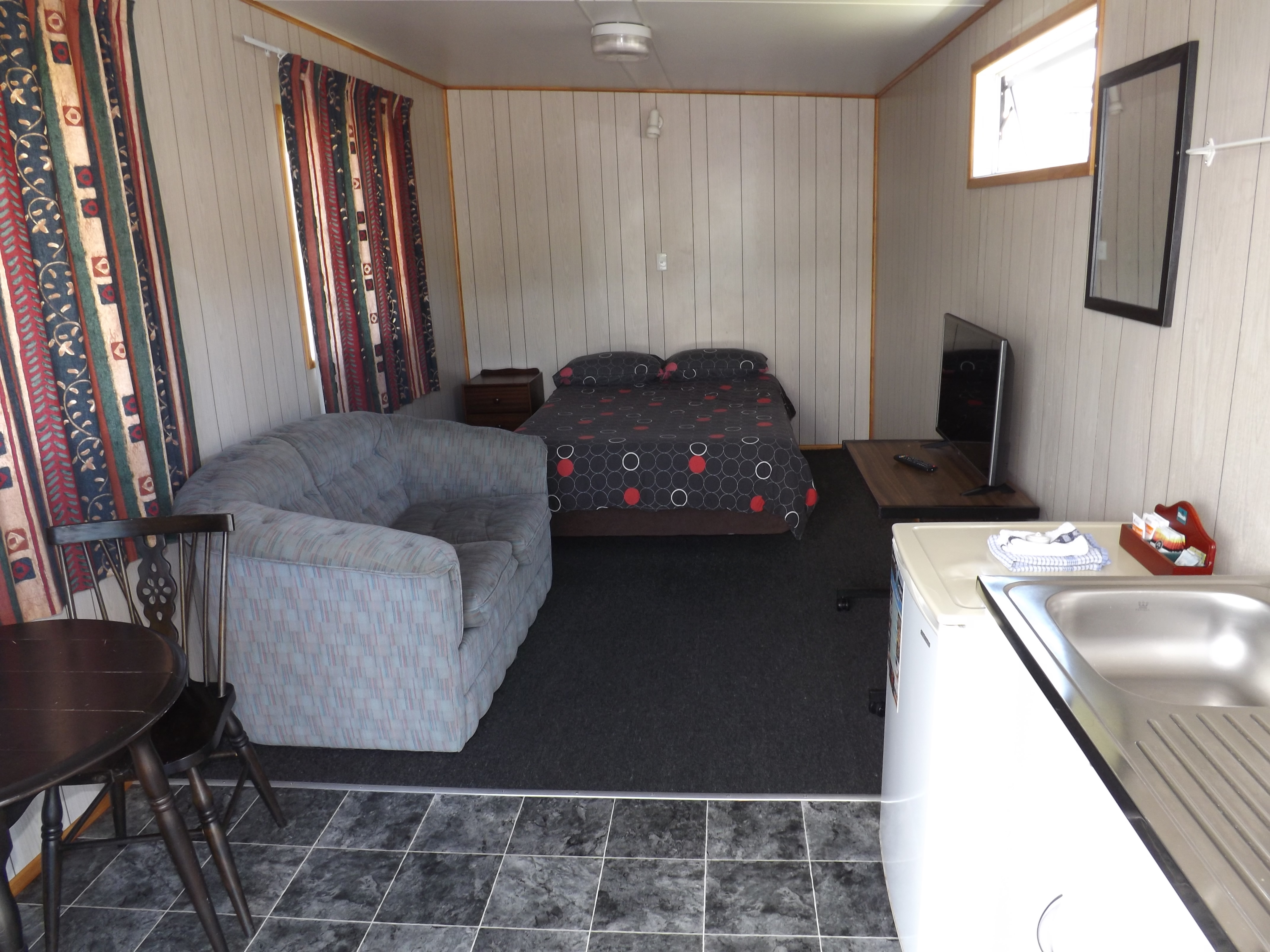 Our Whangarei Kitchen / DVD Cabin is great for couples looking for an affordable weekend away. Our Kitchen / DVD Cabin features a queen sized bed, made up with sheets, blankets and pillows and a 29” television, with DVD player.