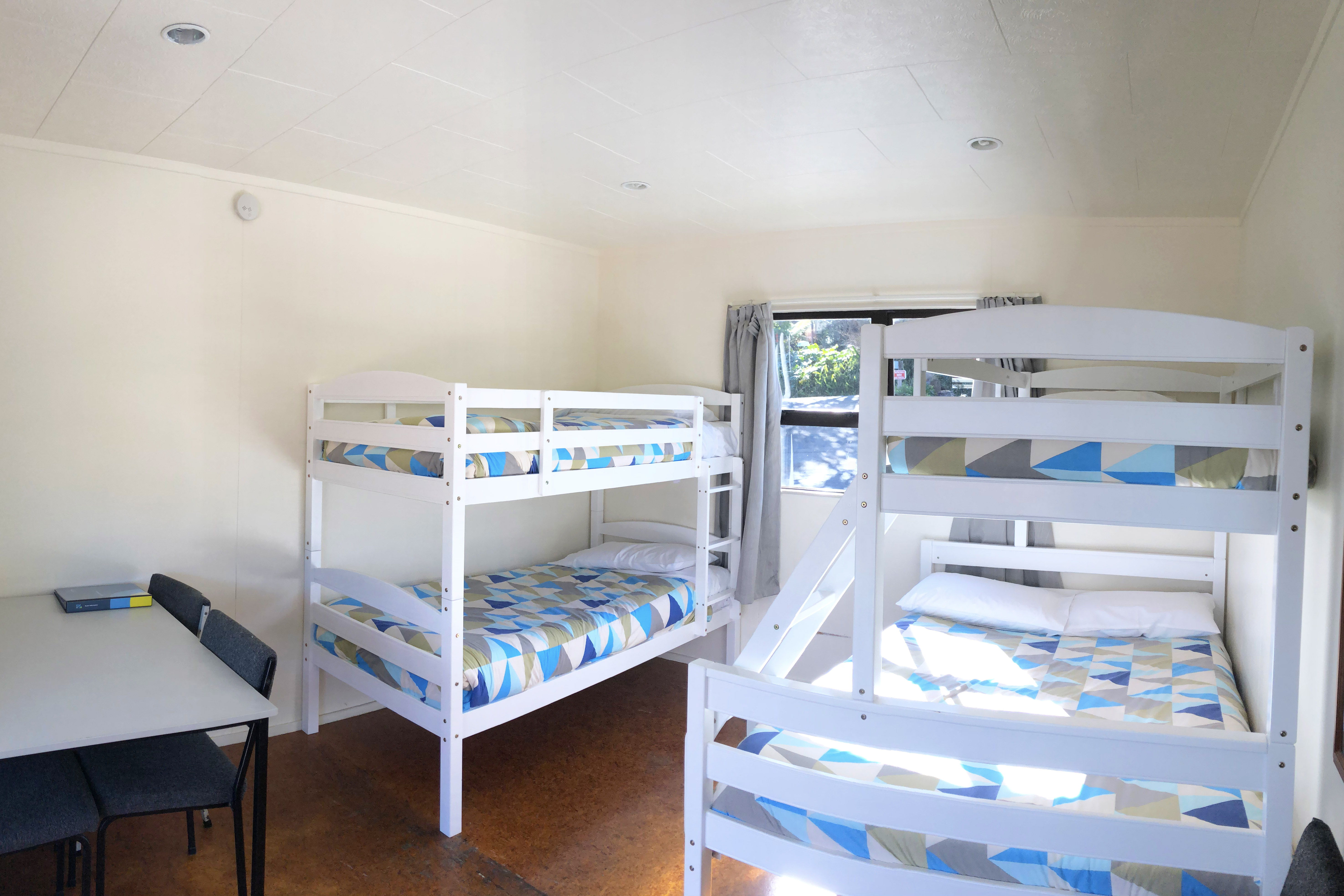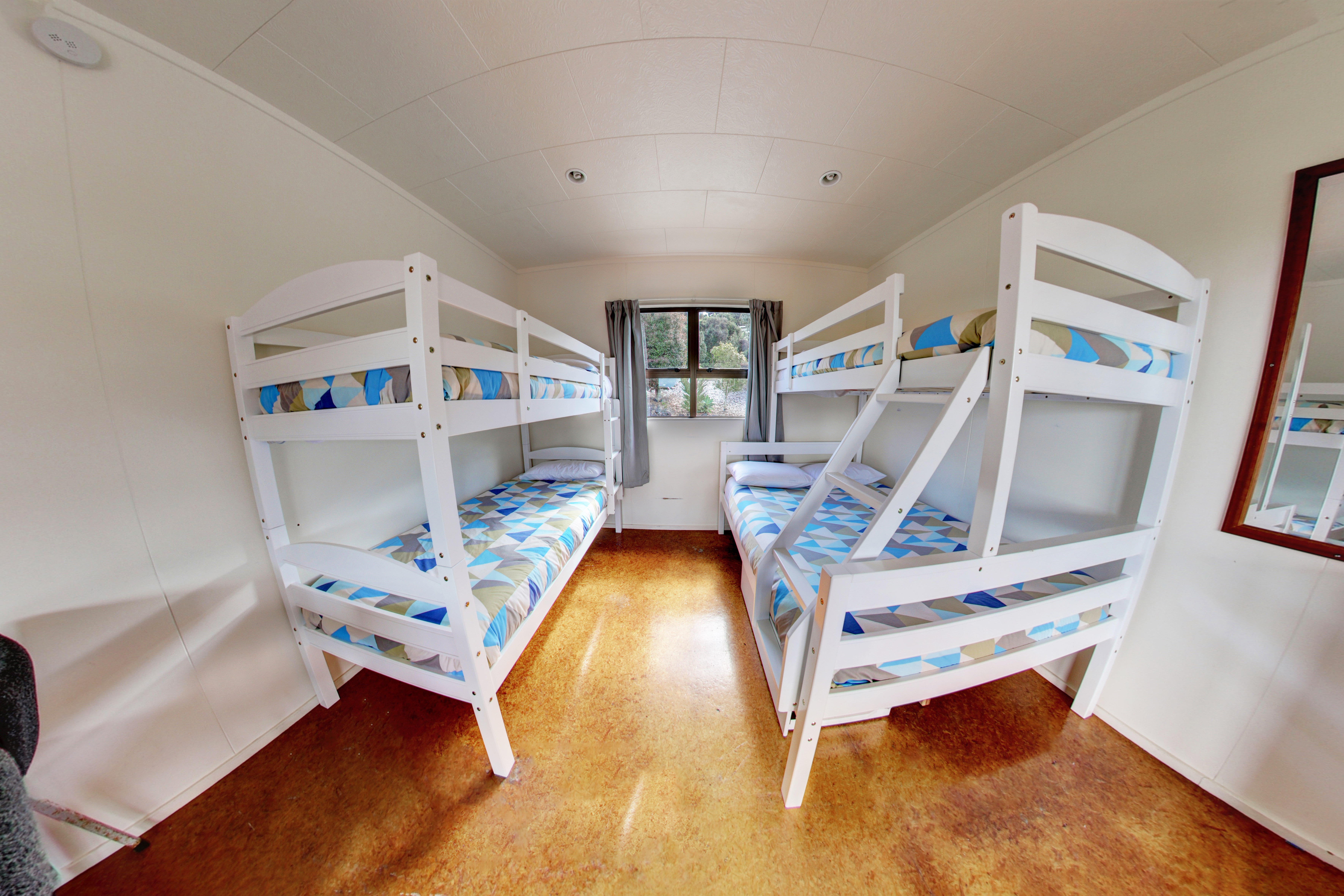 – 1x double bed with single bunk above plus 1x single bunk bed, all in one room