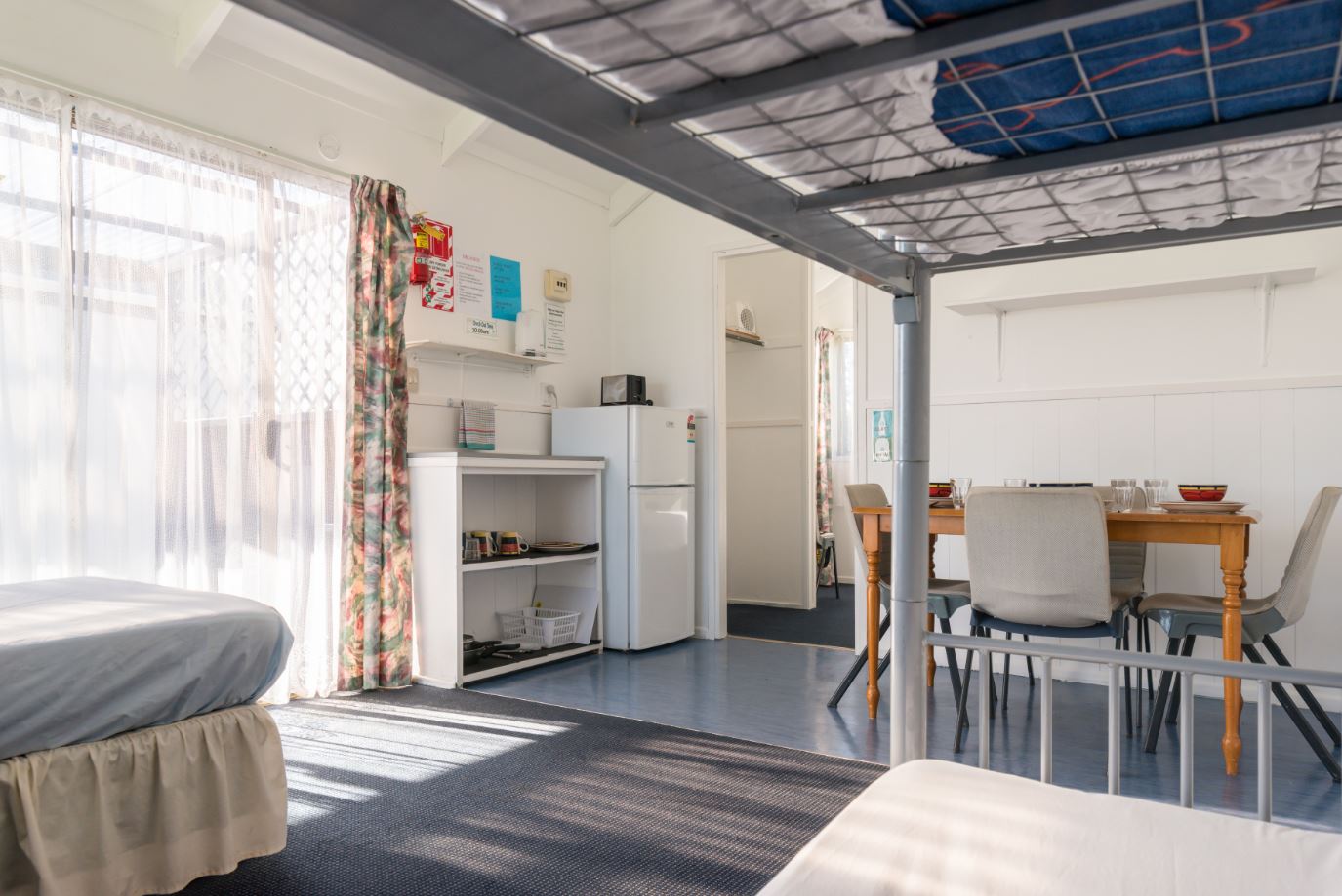 All cabins are one bedroom with their own fridge, crockery and cutlery. Cooking, washing and bathroom facilities are shared. Linen and bedding can be provided.