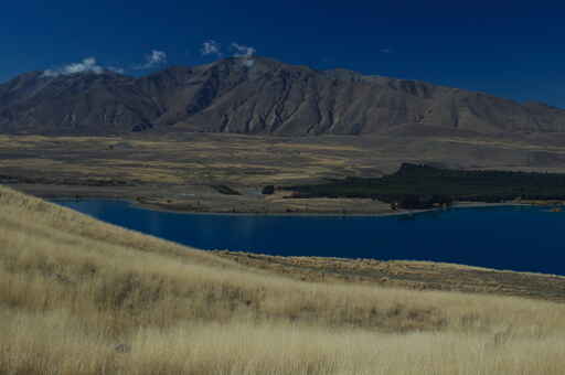 Lying at altitude of over 600 metres and being in the rainshadow of the mountains, the dry, cold country around Lake Tekapo experiences a continental climate similar to Siberia. Summers are very hot, winters are very cold and there is little rainfall. This is why the area is so arid and dusty.