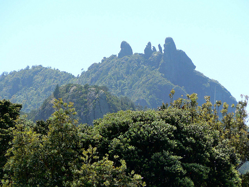 The peaks of the Bream Head Range are the eroded stumps of former volcanic cones, erupted around 20 million years ago. The volcanic vents were filled with slowly cooling lava, which were more resistant than the layers of ash, pumice, lava and mud forming the surrounding cone. Weathering agents over the millennia have removed the less resistant layers, leaving the exposed neck, known as volcanic plug. The andesite lava was silica rich and formed dykes such as Taurikura, at the eastern end, and parasitic cones on the main vent.