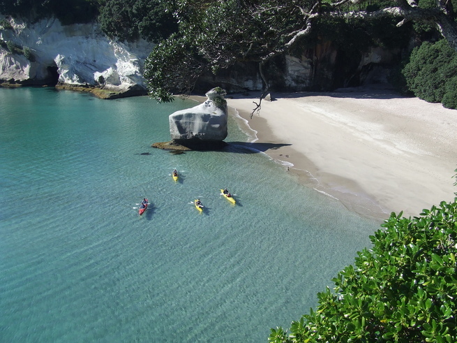 A 3.5 hour kayak tour at Cathedral Cove with a wonderful break with coffee at the beach. Quite pricey though.