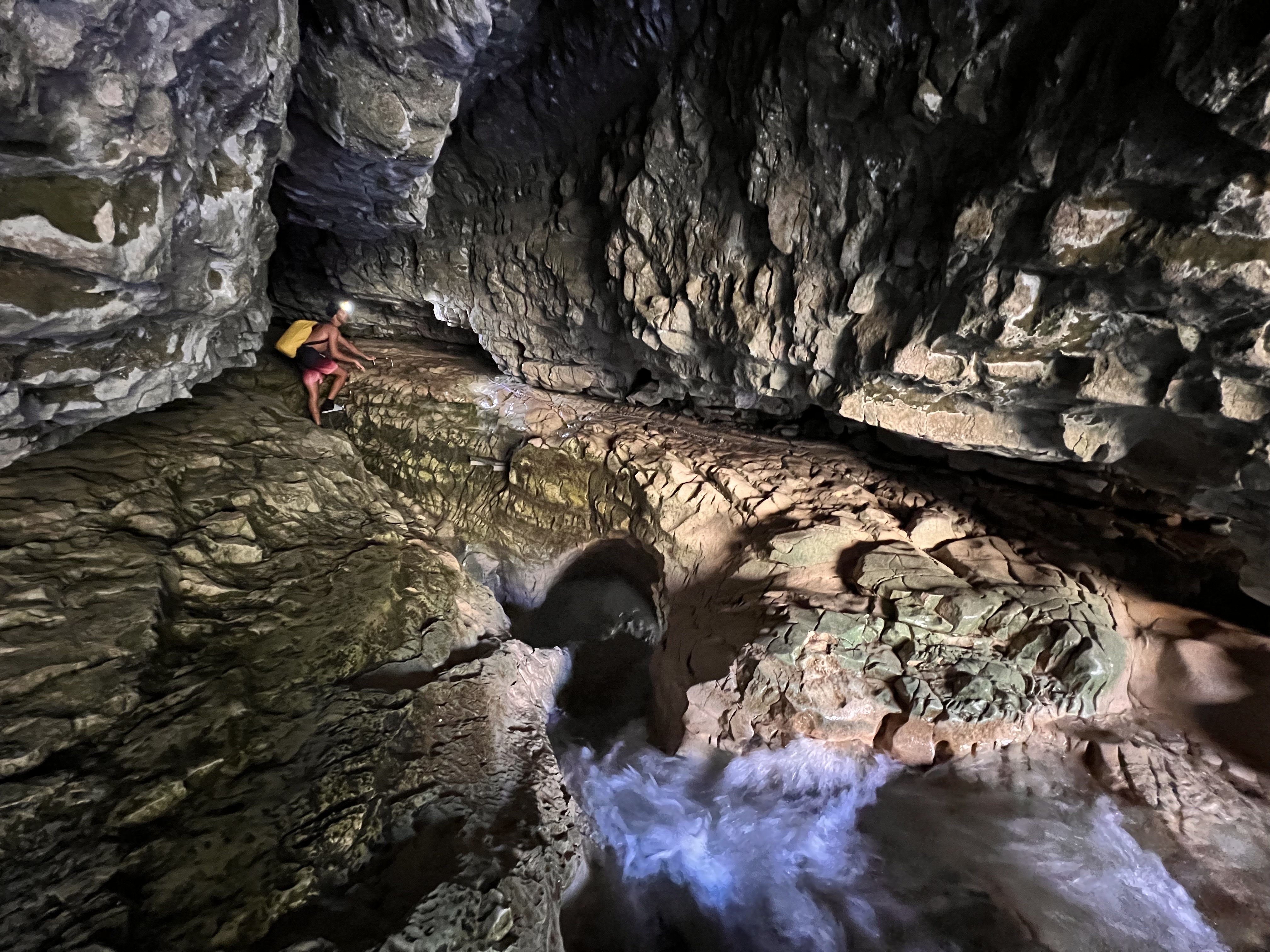 If the pool at the cave outlet is above waist height on an adult, then DO NOT enter.