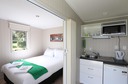 Spacious one bedroom cabin with separate lounge/dining area. The 'Jack and Jill' wooden seats on the outdoor deck are perfect for enjoying the afternoon sun.