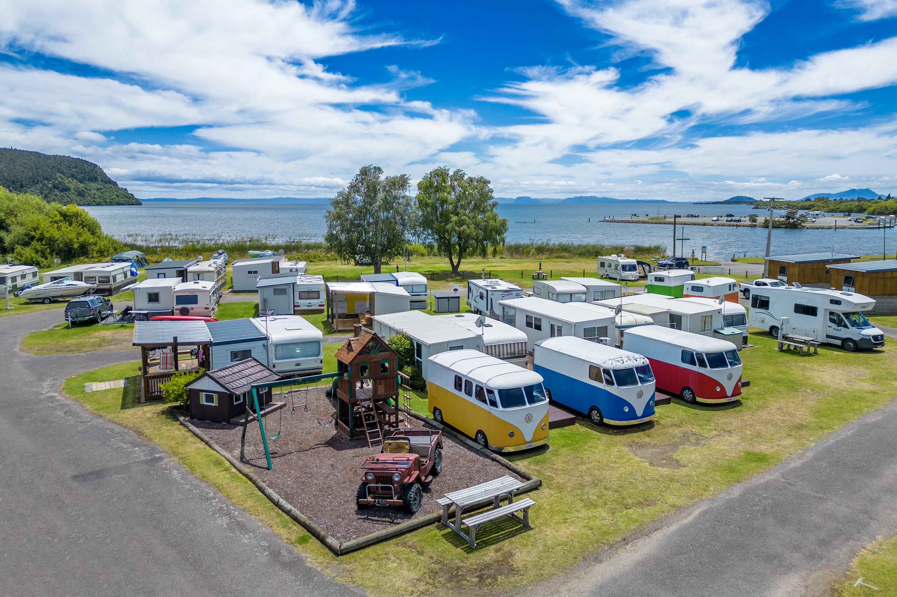 We offer lake front camp sites, luxurious motel units, standard cabins and our brand new exciting retro Kombi cabins all with lake views. We are adjacent to the beautiful Motuoapa Marina and a short walk to the renowed Liquorice Café. A fantastic holiday destination for a relaxed break , A great spot to put your feet up after spending the day enjoying the Tongariro Alpine crossing, a fishing trip or to relax after a great days skiing.